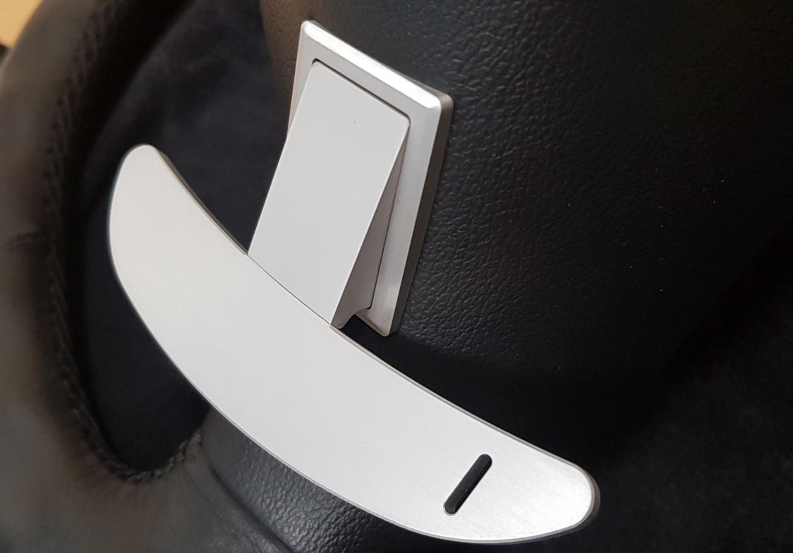 Vaihdeläpän runko on suunniteltu kyseisen ratin muodon mukaiseksi ja istuu siististi ratin kaksois-kaarevaan pintaan.