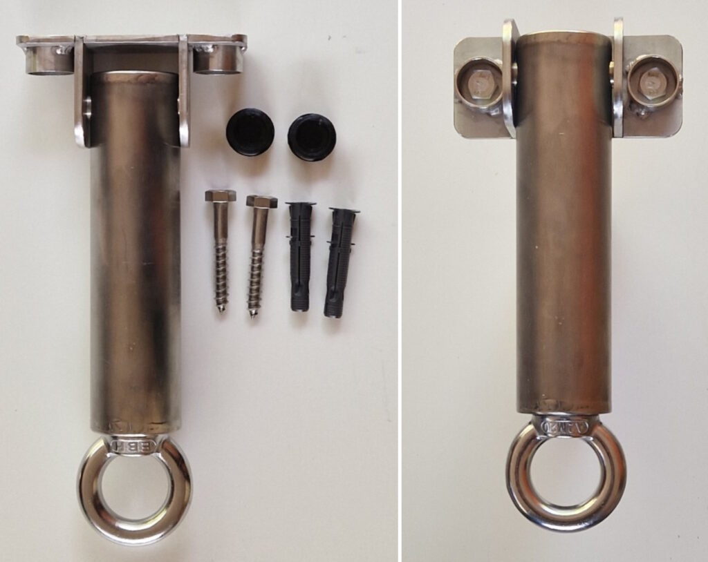 Lukituspuomin hintaan sisältyvät suojatulpat ja kiinnitystarvikkeet: kansipultit ja kiviseinätulpat tai puuseinäkiinnityslevyn kanssa kiinnitysruuvit ja mutterit.